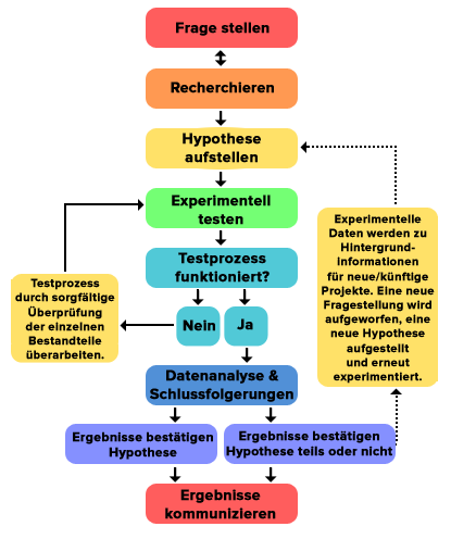 Der Erste Ansatz: Dieser Artikel wird nur einen kleinen Einblick in die wissenschaftliche Methodik geben, jedoch hoffentlich zur Aufklärung beitragen. Für eine einfache Verständigung und um als Einstieg zu dienen, ist die wissenschaftliche Methode graphisch dargestellt: