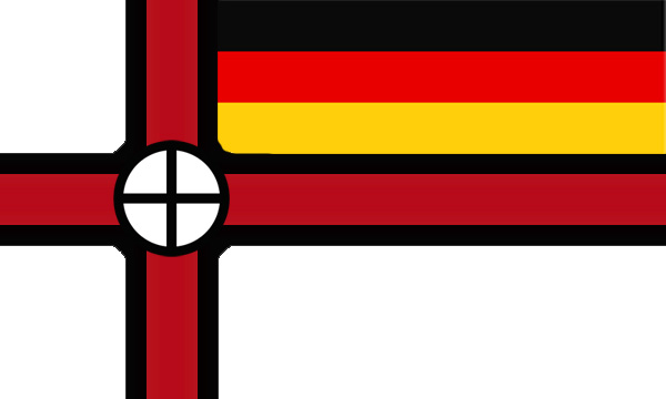 The battle flag represents with the white colour the mercilessness of the winter which we also let the anti-democratic forces experience on a political level (e.g. neo-Nazis), religious level (i.e. religious fundamentalists) and economic level (e.g. lobbyists trying to undermine the people’s vote by pushing for their views); the red colour symbolizes the blood that was spilled for our democracies to form and the ongoing battle in other countries and places (e.g. HongKong, Thailand, Belarus) for democratic values; the black colour signals the seriousness and determination of the cause; finally, the simplified version of the holistic-futuristic logo represents the ideology that is being fought for.
