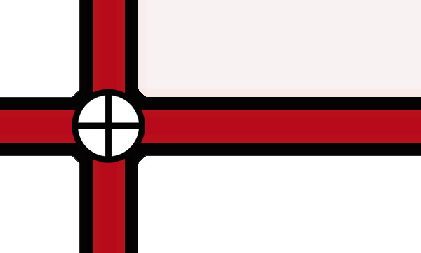 Die Kriegsflagge zeigt mit der weißen Farbe die Erbarmungslosigkeit des Winters welche wir auch den anti-Demokratischen Kräften auf der politischen Ebene zu spüren bekommen lassen (z. B. Neonazis), religiösen Ebene (d.h. Fundamentalisten) und dem wirtschaftlichen (Lobbyisten die stur ihre Interessen durchsetzen und dadurch den demokratischen Prozess der Wahl und Vertretung untergraben); die rote Farbe repräsentiert das Blut das geflossen ist um die heutigen Demokratien zu etablieren, sowie der fortschreitende Kampf in anderen Ländern und Orten (z. B. Hongkong, Thailand, Belarus) für demokratische Werte; die schwarze Farbe signalisiert die Ernsthaftigkeit und Entschlossenheit für die Sache; zu guter letzt symbolisiert die vereinfachte Form des Logos die Ideologie für die gekämpft wird.