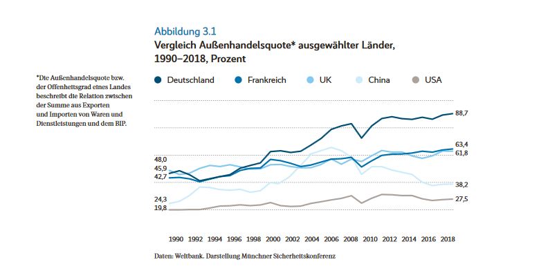 Diese starke Vernetzung und Exportabhängigkeiten heißt jedoch auch, dass Deutschland „von Veränderungen der internationalen Wirtschaftsordnung besonders stark betroffen ist.“