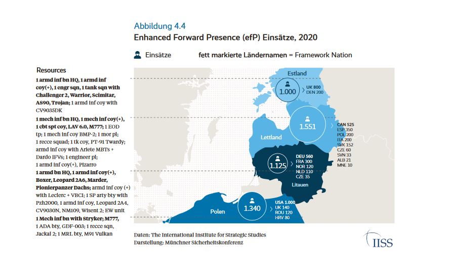 - als einziges kontinentaleuropäisches Mitglied eine Führungsrolle in einem der vier multinationalen Bataillone der NATO-Ostflanke übernommen (enhanced Forward Presence, eFP)