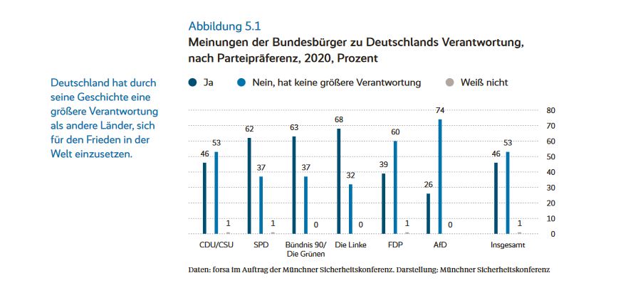 Zwar hat auch Angela Merkel von mehr Verantwortung geredet, doch nach Tobias Bunde (dem Autor des Kapitels) sei der Satz „mehr Verantwortung“ zu übernehmen in den vergangen Jahren unterschiedlich interpretiert worden (S. 19, Absatz 7).