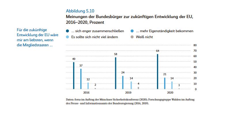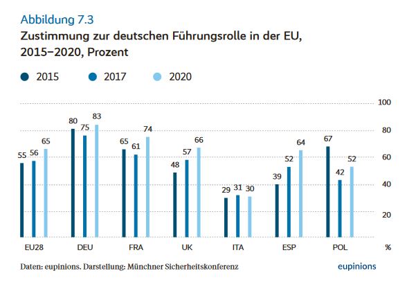 Eine aufgeklärte Deutsche Führungsrolle sei auch im Sinne der Europäer/innen, wie eine Meinungsumfrage der Bertelsmann Stiftung im Juni 2020 – nach Bekanntmachung des deutsch-französischen Vorschlags für ein Corona-Paket – zeige.