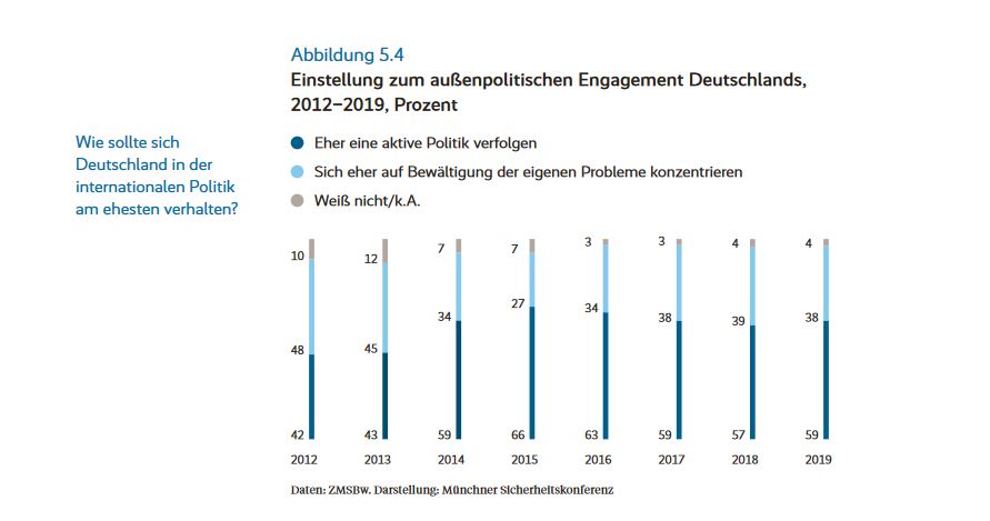 Deutschland könne nur innerhalb der EU und NATO eine weltpolitische Handlungsfähigkeit erlangen. Dafür solle sich Deutschland auch das zu eigen machen, was Außenminister Heiko Maas den „europäischen Imperativ“ nannte. Das heißt, dass Deutschland europäische Interessen als nationale Interessen begreifen sollte, also nationale Interessen auch europäisch zu denken – und dementsprechend natürlich auch zu handeln.