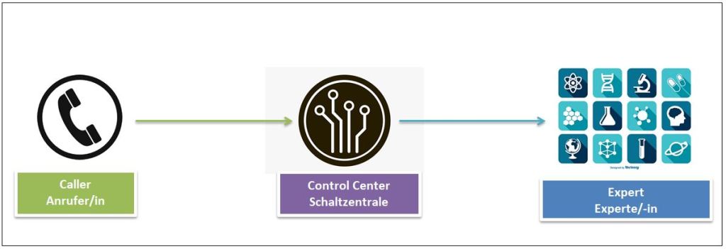 3. Die Schaltzentrale verbindet den/die Anrufer/in mit dem/der Experten/-in