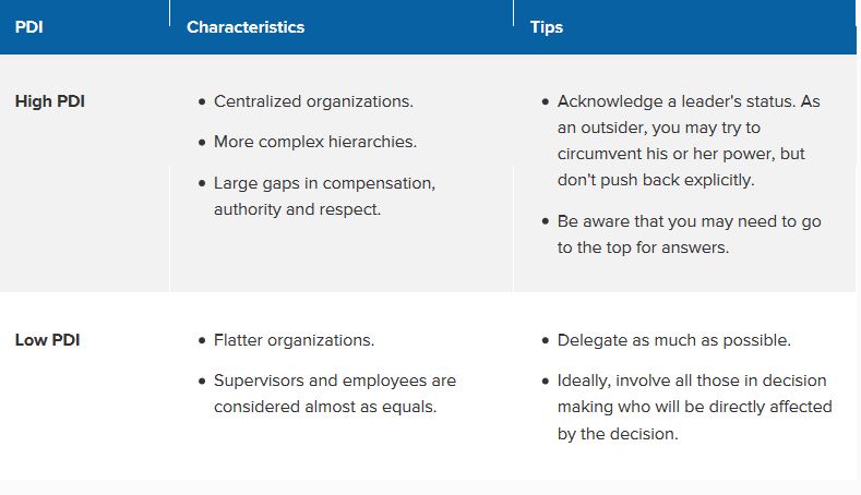 PDI is the extent to which inequalities of power and wealth are commonly accepted.