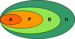 In der Naturethik gibt vier verschiedenen Kategorien, die eine umfasst mehr als die – quasi so ähnlich aufgebaut wie das Erdinnere mit den verschiedenen Schichten.