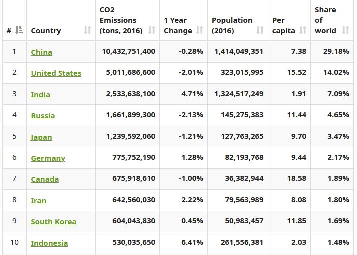 On the 12th November we are going to see the results of the 26th Climate Change Conference. I finish this entry by presenting the Top 10 Co2-contributors (67.44%):