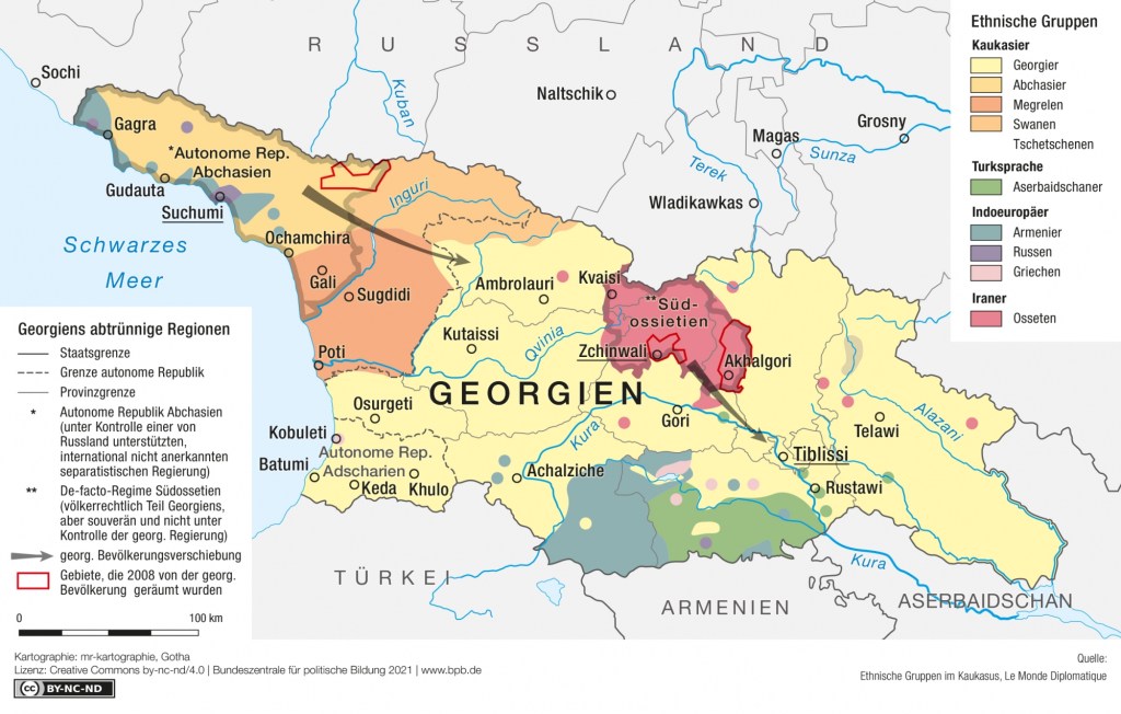 - Georgien ist ein multiethnischer Staat, die ossetische und abchasische Minderheit verfügten in der UdSSR über Autonomiegebiete innerhalb Georgiens
