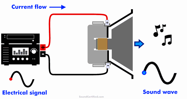 Loudspeakers that are usually found in headphones or other audio systems use electric current inputs that pass through a coil of wire that generates a magnetic field, which moves a speaker membrane, that moves the air above it, thus creating the sound we hear (see animation).