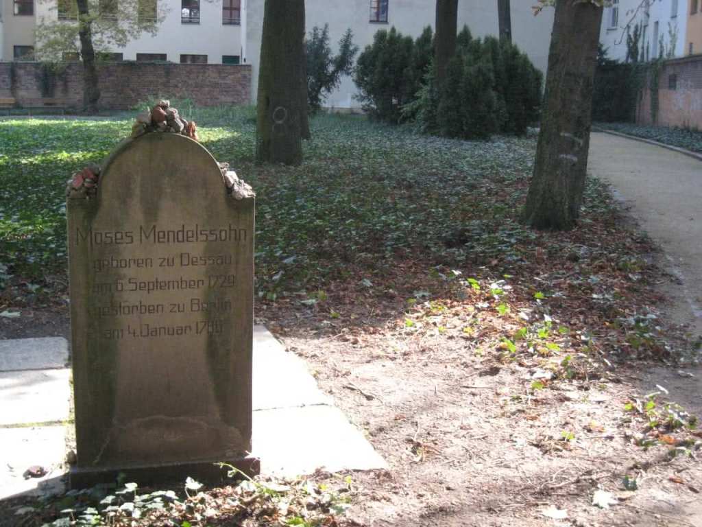 | Der Friedhof wurde von 1672 bis 1827 genutzt und war Begräbnisplatz der 50 Familien von Wiener Schutzjuden die 1671 nach Berlin kamen und vor dem Spandauer Tor angesiedelt wurden. Als er geschlossen wurde, hatte er 2767 Grabstätten. Bedeutende Persönlichkeiten des Berliner Judentums wurden hier auch bestattet: „Moses Mendelssohn (1729-1786), Veitel Heine Ephraim (1703-1775), dem Münz- und Silberkaufmann Daniel Itzig (1725-1799) und seinem Sohn Isaac Daniel Itzig (1750-1806), dem Arzt und Philosophen Marcus Herz (1747-1803) oder Jacob Herz Beer (1769-1825), dem Vater von Giacomo Meyerbeer.“ Seit 1844 befand sich davor das erste jüdische Altersheim und links daneben die Knabenvolksschule. Ab 1942 wurde es als »Judenlager« von der Gestapo genutzt und in ein Gefängnis mit Gittern und Scheinwerfern umgewandelt. Im Jahr 1943 verwüsteten und verschändeten SS-Leute auf Befehl der Gestapo den alten jüdischen Friedhof. Schließlich, im April 1945, diente das Areal als Massengrab für gefallene Soldaten und im Bombenhagel getötete Zivilisten. In den 1970ern wurde die übrig gebliebenen jüdischen Grabsteine und die für die Bombenopfer aufgestellten Holzkreuze von dem Ost-Berliner Stadtgartenamt beseitigt. „Zur Erinnerung an die tragischen Geschehnisse blieben ein symbolisches Grabmal für Moses Mendelssohn und ein Sarkophag aus zerstörten Grabsteinen. Vermutlich 3000 Kriegopfer – davon sind etwa 2000 namentlich bekannt – ruhen nun neben geschätzten 3000 hier bestatteten jüdischen Verstorbenen.“ |