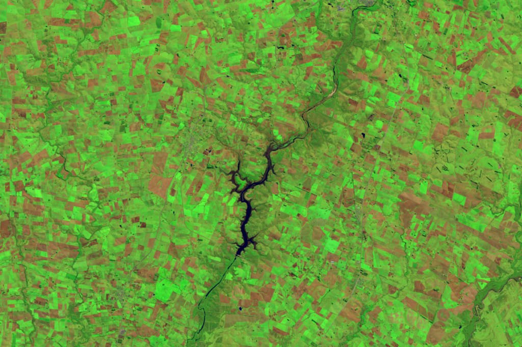 Uruguay is experiencing a multi-year drought which led to the two main freshwater reservoirs, which provide water to the capital city Montevideo, to nearly run dry. Paso Severino, the larger of the two, was estimated to just hold 2.4% of its 67-million-cubic-meter capacity on June 28 (see images taken below by Operational Land Imager-2 on Landsat 9 in false colour to distinguish water more easily). The images below show Paso Severino; the first shows the reservoir on June 2, 2022 and the latter on June 13, 2023, about one week before the Uruguayan government declared a water crisis (source: NASA Earth Observatory).