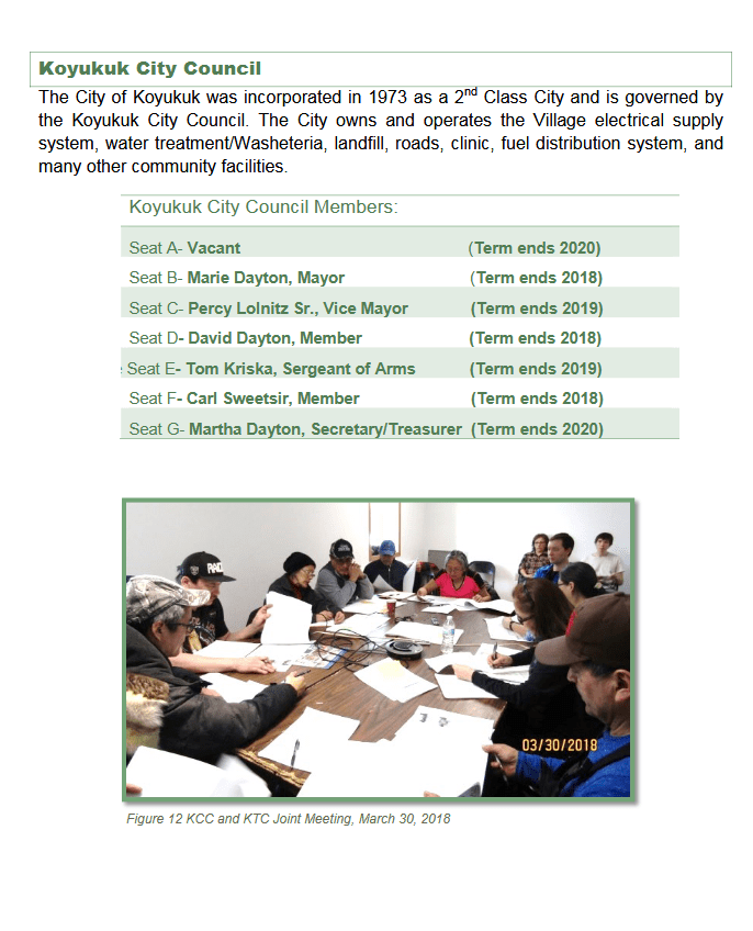 Finally, I’ll introduce you to the Koyukuk Tribal Council and Koyukuk City Council.
