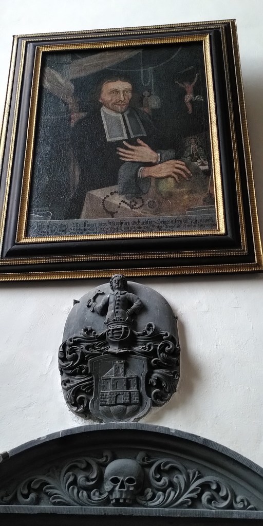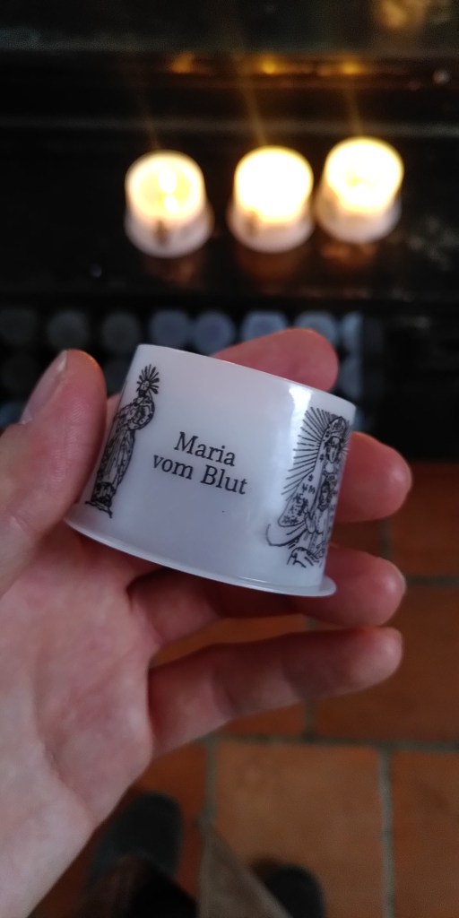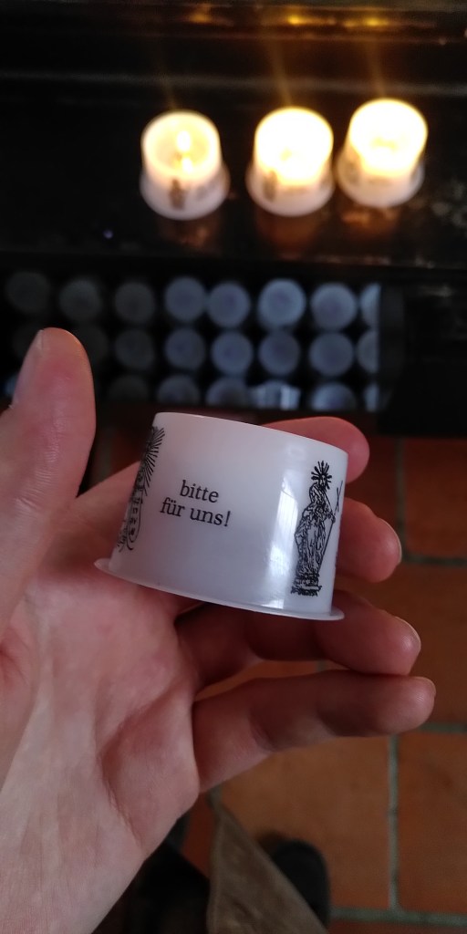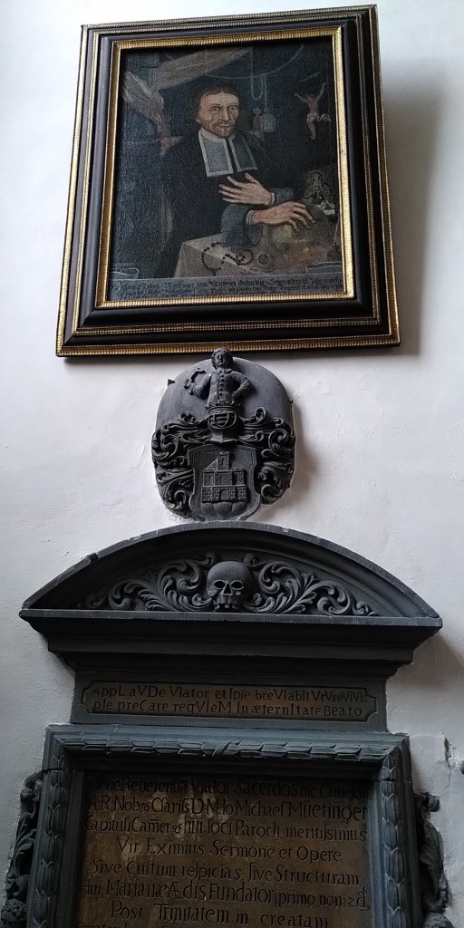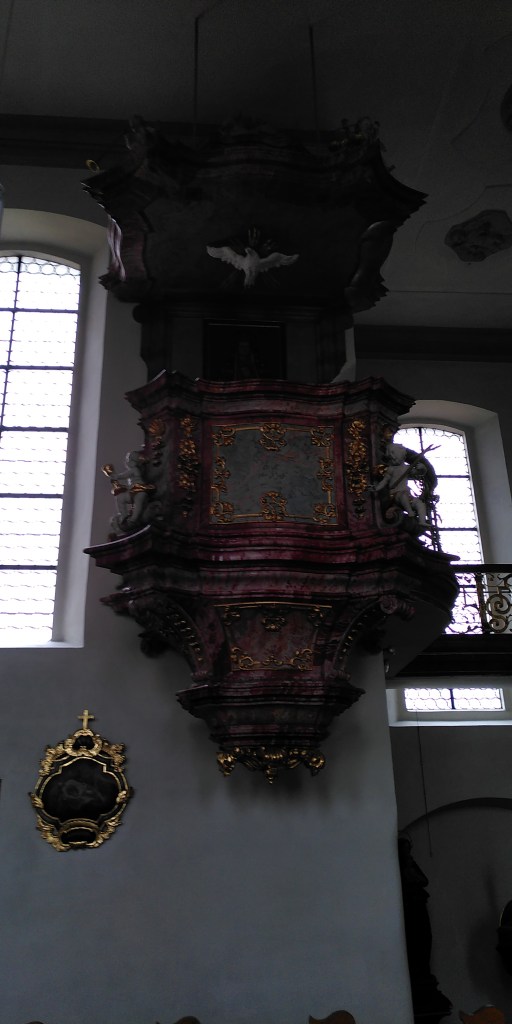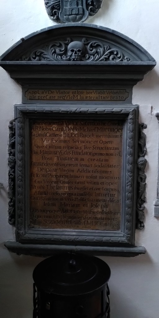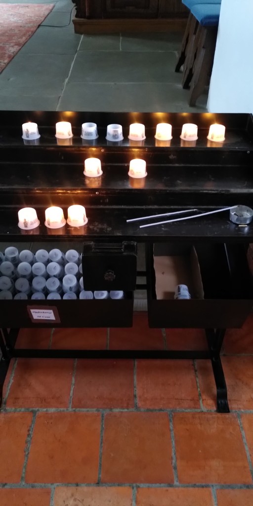 Und wie es üblich in Kirchen ist die ich mit meiner Familie in Europa besucht habe, Italien im insbesonderen, können auch hier Opferkerzen angezündet werden für 50 cent (Bilder 2-5). Die Bilder 6-7 bilden vermutlich Johann Michael Mietinger ab, wenn ich den Namen richtig gelesen habe. Im Bild Nr. 8 können Sie den Beichtstuhl sehen, ein eher kleinerer.