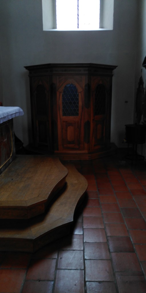 In picture nr. 8 you can see the confessional booth, a rather small one that is.