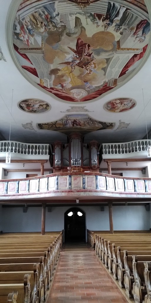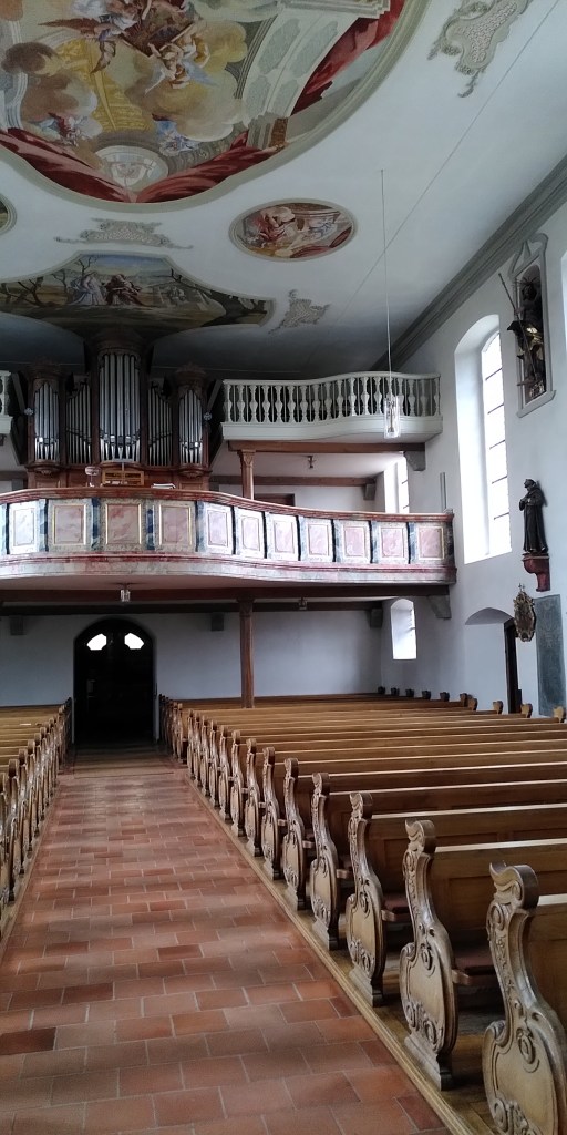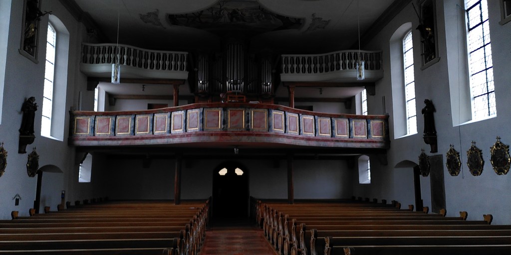 1767 A new organ was built by Josef Lang from Wasserburg for 251 guilders on the upper gallery. In 1786/87 the organ was repaired by Joseph Höss and between 1827 and 1849 by Friedrich Ruef, the latter described the organ as ‚extraordinarly defective‘.